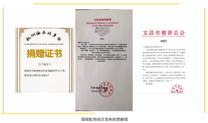 隨著疫情的蔓延,國(guó)外的確診病例不斷上升,多國(guó)開(kāi)始升級(jí)防疫措施。呂蘭瓊理事?tīng)繏熘谕夂D相l(xiāng)親們的安危,于是主動(dòng)聯(lián)系美國(guó)海南商會(huì)的有關(guān)人員,詢問(wèn)他們是否需要幫助,并采購(gòu)了1000個(gè)口罩寄往美國(guó),捐贈(zèng)給美國(guó)海南商會(huì)。此外,她還積極與有關(guān)部門(mén)聯(lián)系,想要再捐贈(zèng)一些口罩給其他在海外的海南鄉(xiāng)親。“我作為一名海南文昌人,在疫情面前,希望可以盡自己小小的能力幫助海南鄉(xiāng)親。”呂蘭瓊理事說(shuō)道。