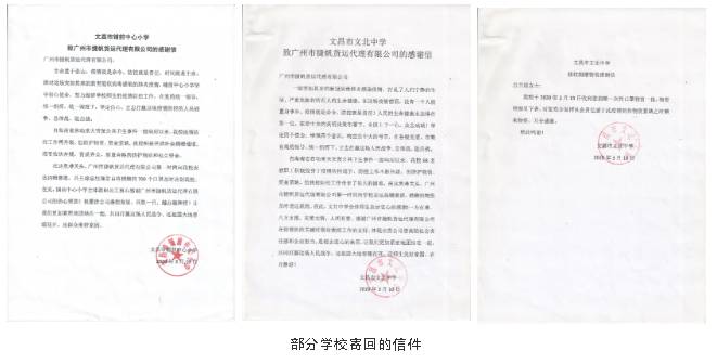 不久后,我們收到了許多學(xué)校寄回的感謝信件——